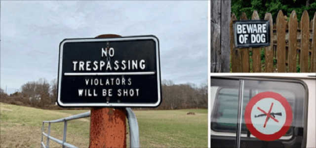 This is a common sign that helps to empower the owner. A sign like this gives you the ability to basically threaten all who might step foot on your property.